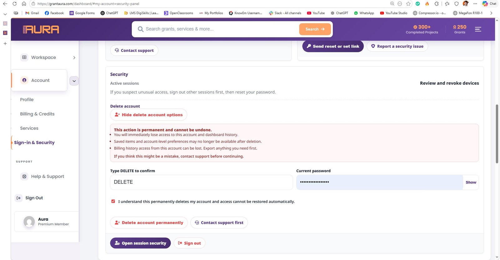 Deleting your Grantaura account is intentionally strict to prevent accidental loss. Follow these steps in order. If any step fails, stop and contact support before trying again.